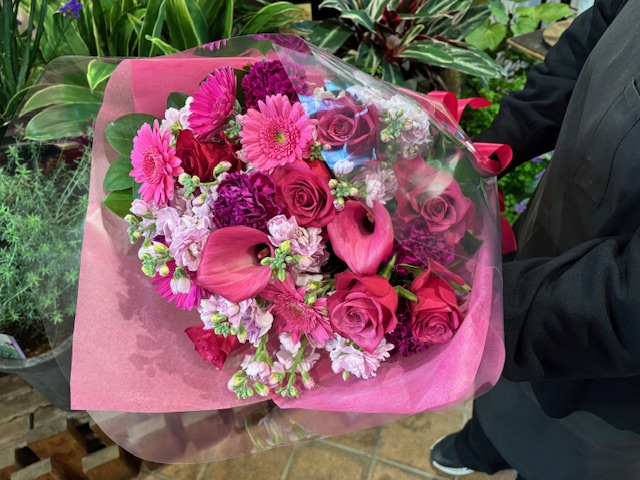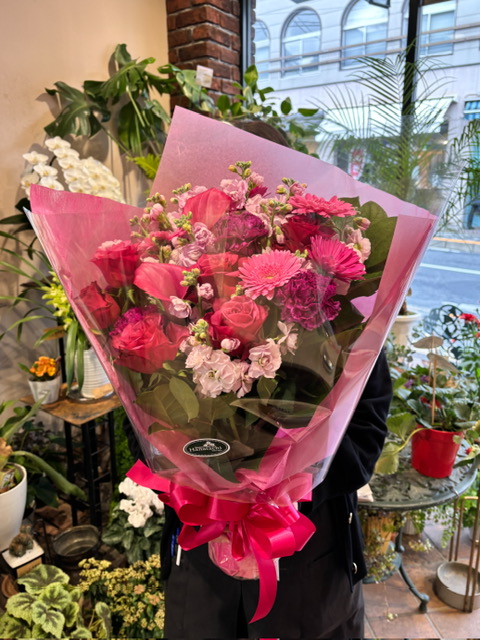 さて、こちらはピンク系の花束。