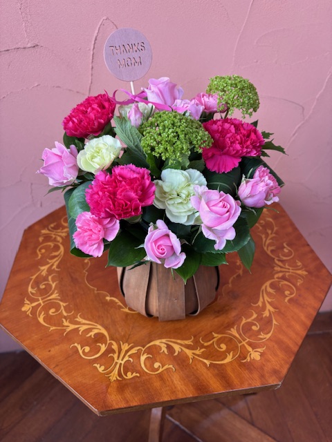 こちらは母の日に気軽に花を贈ることができるように、コンパクトにお作りしました。